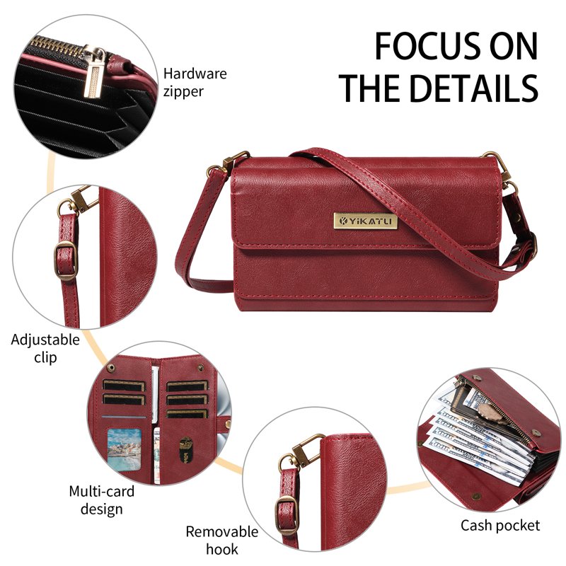 - Ample Storage Capacity: Innehåller 9 kortfack, ett zip-fack, 4 sedelfack och 5 fickor för maximal organisering.