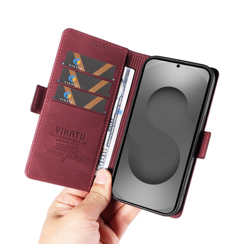 YIKATU YK-005 läderfodral för Samsung Galaxy S26 Ultra erbjuder både stil och funktionalitet. Med en lyxig känsla och smart design skyddar detta fodral din telefon samtidigt som det ger plats för kort och kontanter. Det är det perfekta valet för den moderna användaren som värdesätter både estetik och praktiska lösningar.