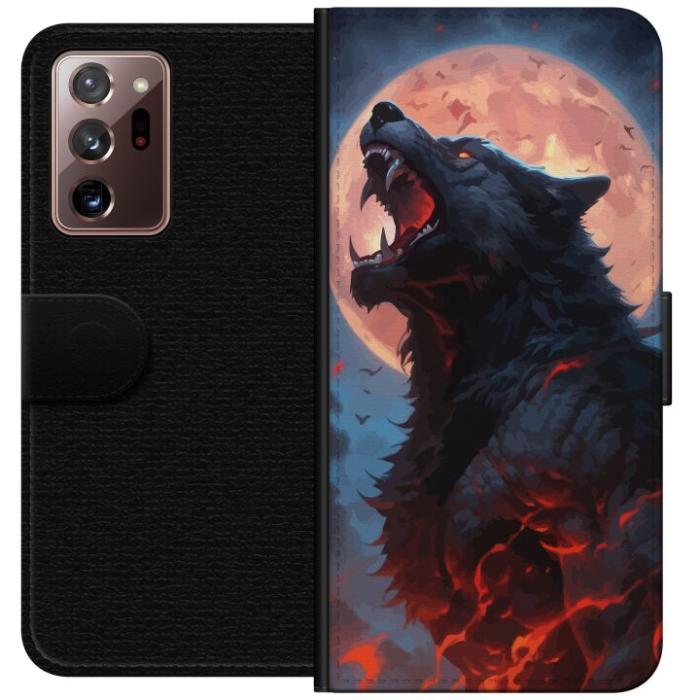 Plånboksfodral för Galaxy Note20 Ultra med Ylande varg -design. Fodralet kombinerar stil och funktion – ett slitstarkt mobilskal som skyddar mot repor och stötar samt praktiska kortfack på insidan.